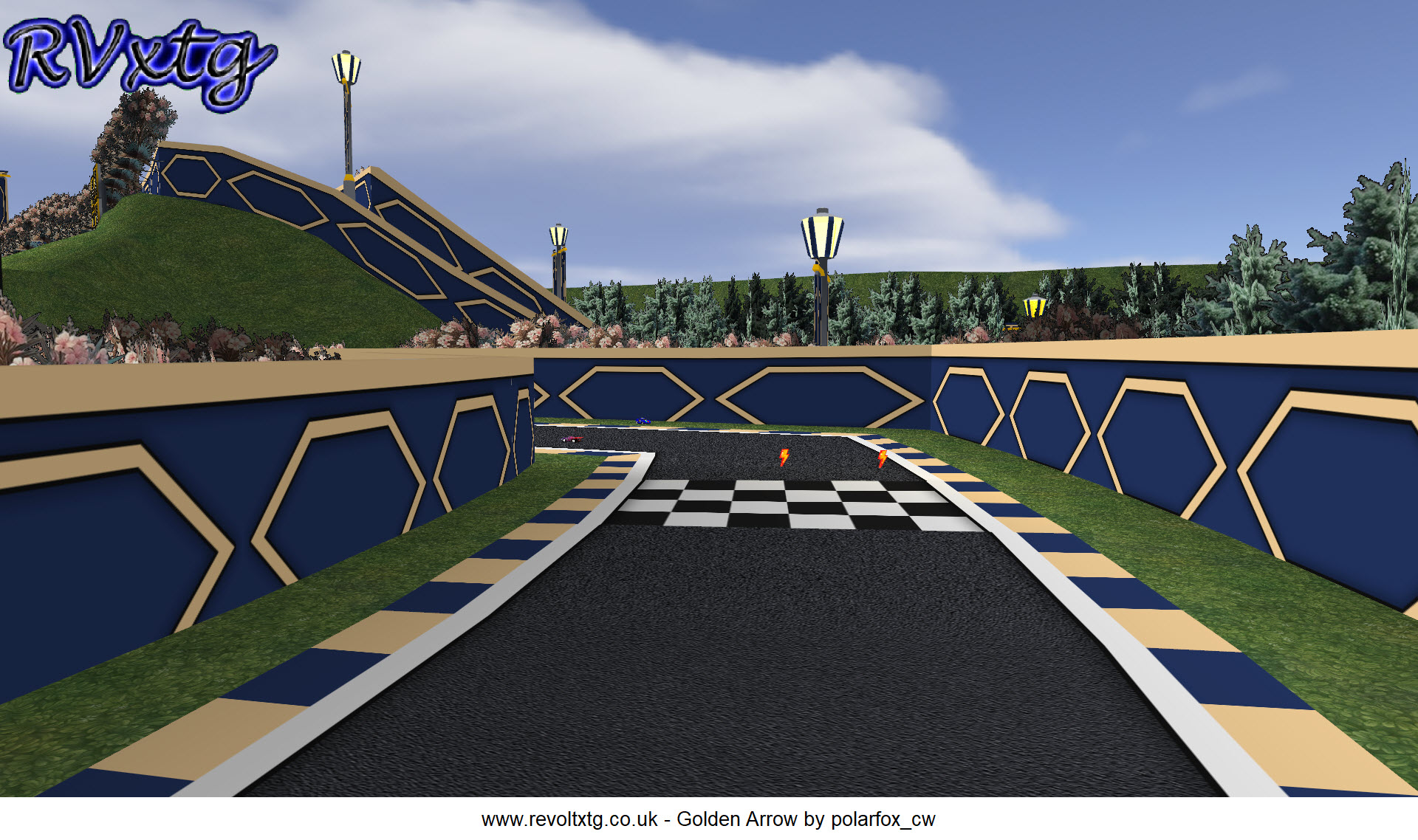 Track Review :- This feels like a long track as there are lots of straight parts and sharp turns. The ramps are not smooth like in Darkvale but have edges across the track which makes racing feel not so good. It looks like a good track but it just looks like there is something missing. I am not sure of what this theme is but it looks ok and is made fairly ok. The gfx around the track is ok but just looks not right in some places. Overall, I did not like racing on this track. |
